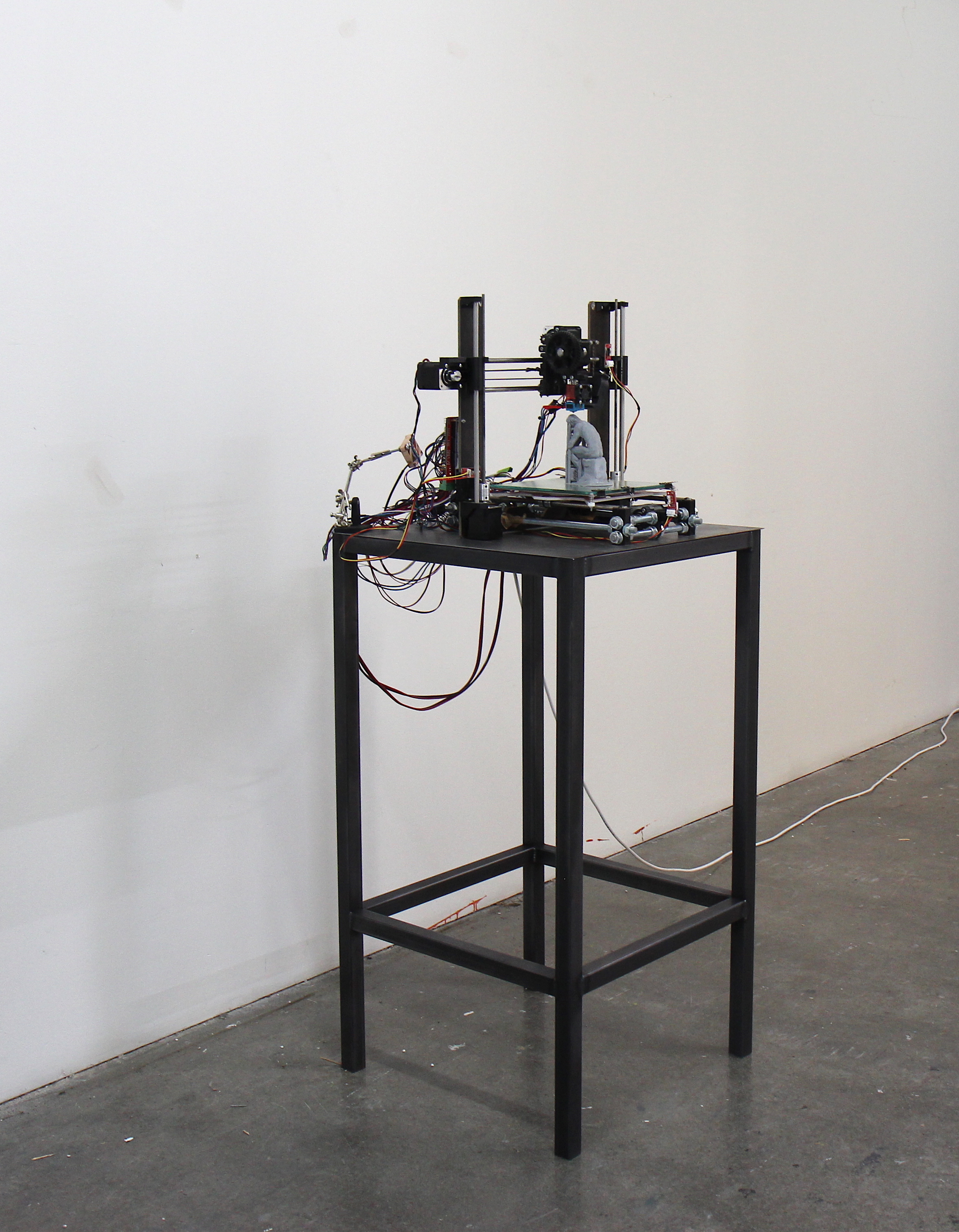 3D printer made by the artist, upon a mild steel table